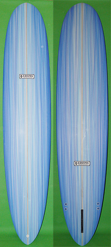 <仕様> 長さ: 9'1" 横幅: 22 1/4(56.5cm) 厚さ: 2 3/4(7.0cm) ロッカー: ノーズ弱め、テール強め レール: ミディアム ボトム: ノーズコンケーブ〜ラウンドVEE テール: ラウンドピン フィン: シングル スタビライザ / FCS