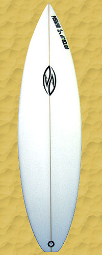 shaped by tsuyoshi yoshika サイズ : 180,3×46,3×5,3 レール形状 : ハーフボキシー ボトム : シングルダブル テール : ラウンドスカッシュ フィン : F.C.S ベスト体重 : 57kg〜63kg