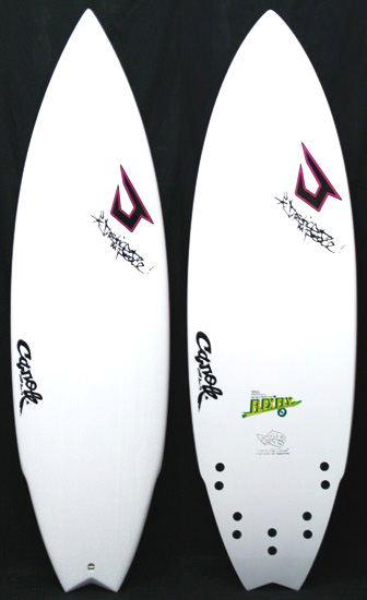 このモデルは「EPS+PVC」使用サーフボードです。 PVCとは・・・「硬質ウレタンに似たモーターボートなどの側面に使用される素材」で、 低密度のEPSブランクスと「PVC(ポリ塩化ビニル)」という素材・エポキシ樹脂・ガラスクロスにて作られます。