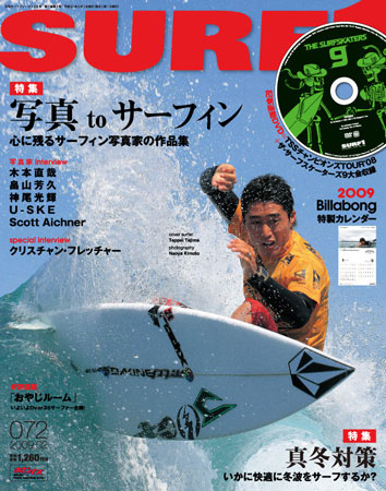 サーフィン好きなら刺激的なSURF1zehi ◆まずは巻頭大特集「写真 toサーフィン」ぶち抜き40ページで展開=世界一のスコット・アイクナー、木本直哉、畠山芳久、神尾光輝、U-SKEらの写真家としての生き様インタビューは必読