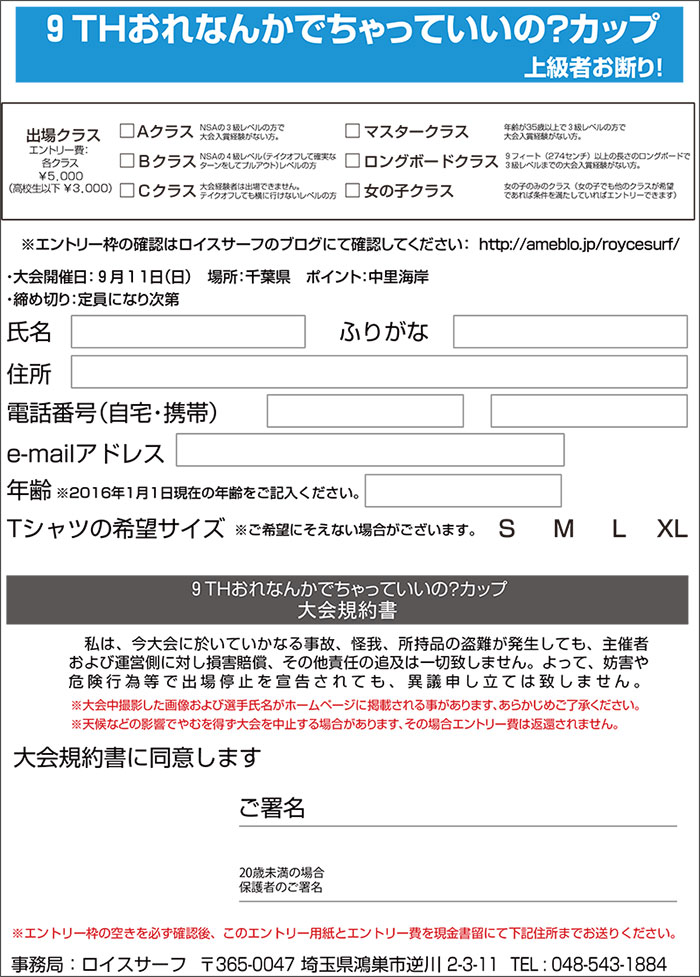 このエントリー用紙とエントリー費を現金書留にて下記住所までお送りください。