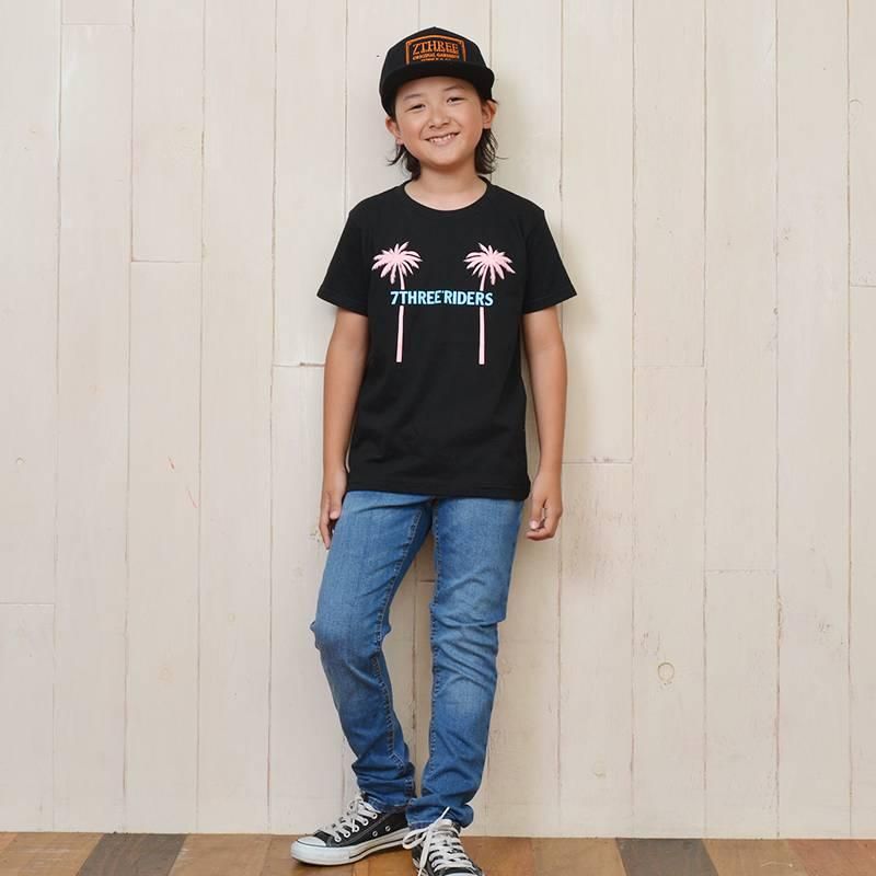 親子お揃いも楽しめるパームツリーデザインTシャツが登場!7THREE RIDERSのロゴと共に、夏を彩るTシャツをお楽しみください。5.6ozの着心地抜群のTシャツとなります。7319-T31のTシャツでパパもママもお揃いコーデをお楽しみいただけます。