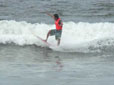 午前中、曇っていたものの午後からは回復。波は腰〜胸、風は弱いオンショアで大会のコンディションとしては申し分ない。