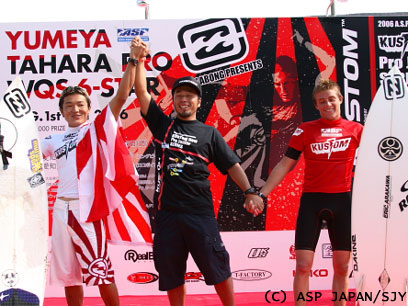 名称 : A.S.P 1star WPJ Event KUSTOM flow Pro Junior 日時 : 2006/7/31(月) 場所 : 愛知県田原市 ポイント : ロングビーチ コメント: KUSTOM flow Pro Juniorのウィナーは、田中英義選手。 2位に トニノ・ベンソン 選手(HAW)