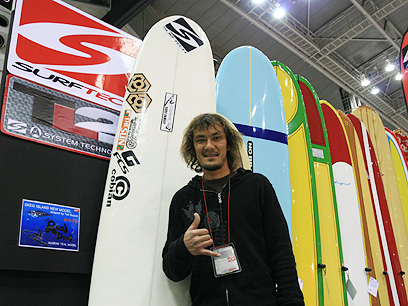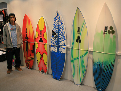 今回の展示会では、サーフボードメーカー各社が新しい素材、システムを使用したサーフボードを展示しており、興味深いものがありました。その中でも人気はパラボリックボード。サーフボードは今後も進化し続けそうです。