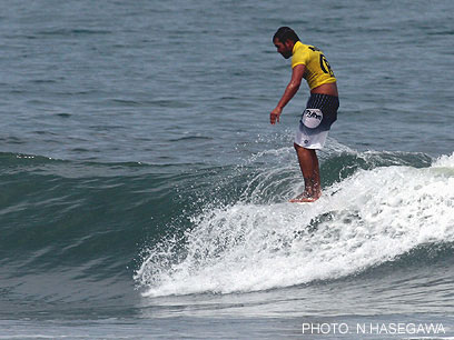 大会会場の太東ビーチパークでは、早朝多少風の影響を受けつつも、次第にコンディションが整い、2〜3フィートの綺麗な波がラインアップするコンディションの中、ラウンドオブ96からラウンドオブ64までの全32ヒートを行った。