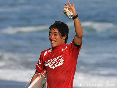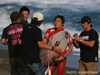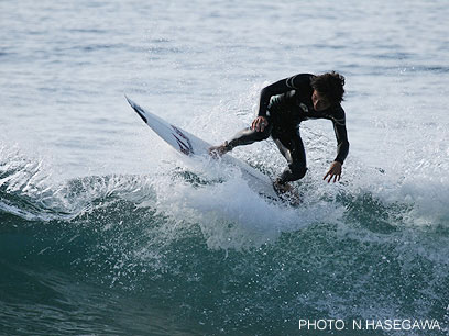 今回、大会を見ている中で目を引いた選手は仲野仁人。四国の若手プロサーファー。長い手足でスタイリッシュなライディングを見せてくれた。じっくりとセットを待ち、派手でカッコイイライディングをしてくれる。仲野仁人がテイクオフすると何かやってくれるんじゃないか、とついつい期待してしまいました。