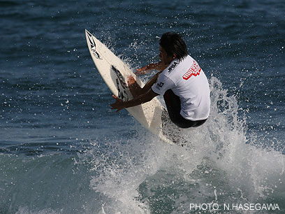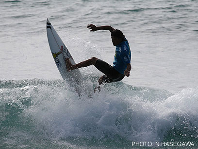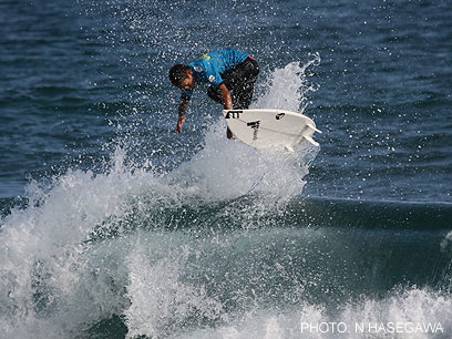 台風が抜けた後で波サイズに期待していたが、一気にサイズが落ちて腰〜胸セット肩のコンディション。ダンパー気味の速い波が多い中、プロサーファーたちはスピード感あふれるライディングを見せてくれた。