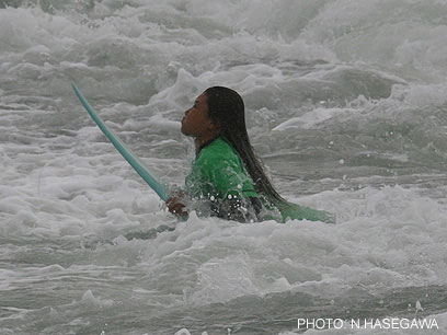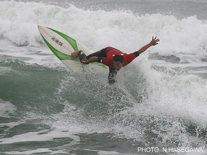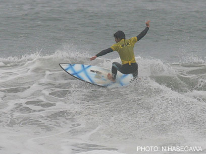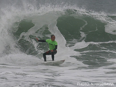 は上級者エントリー禁止の大会。初中級者のみエントリーできる大会なので、みんなサイズのある波に苦労していました。